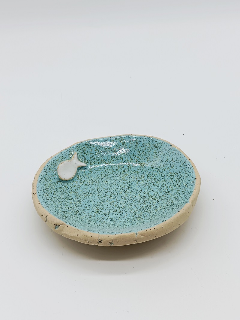 2Δ3 Πιατάκι με ένθετο με σκασμένο πηλό στο τελείωμα 13εκ και ύψος 2,5εκ
