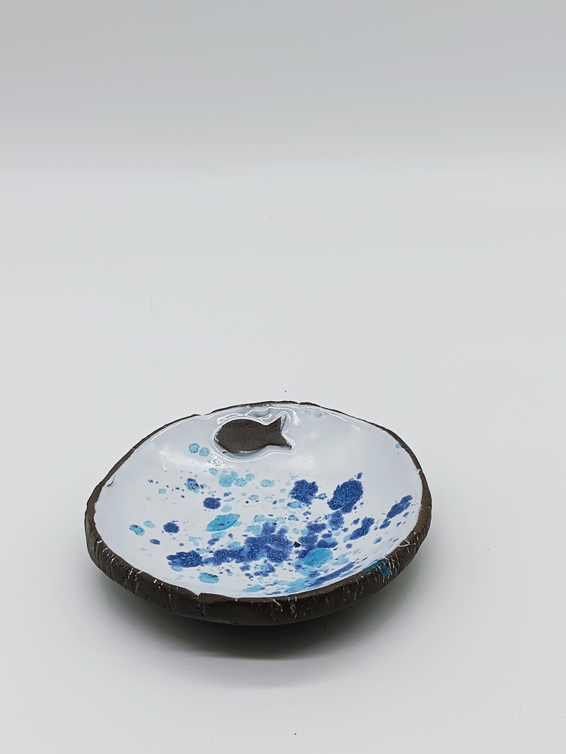 2Γ2 Πιατάκι με ένθετο με σκασμένο πηλό στο τελείωμα 13εκ και ύψος 2,5εκ