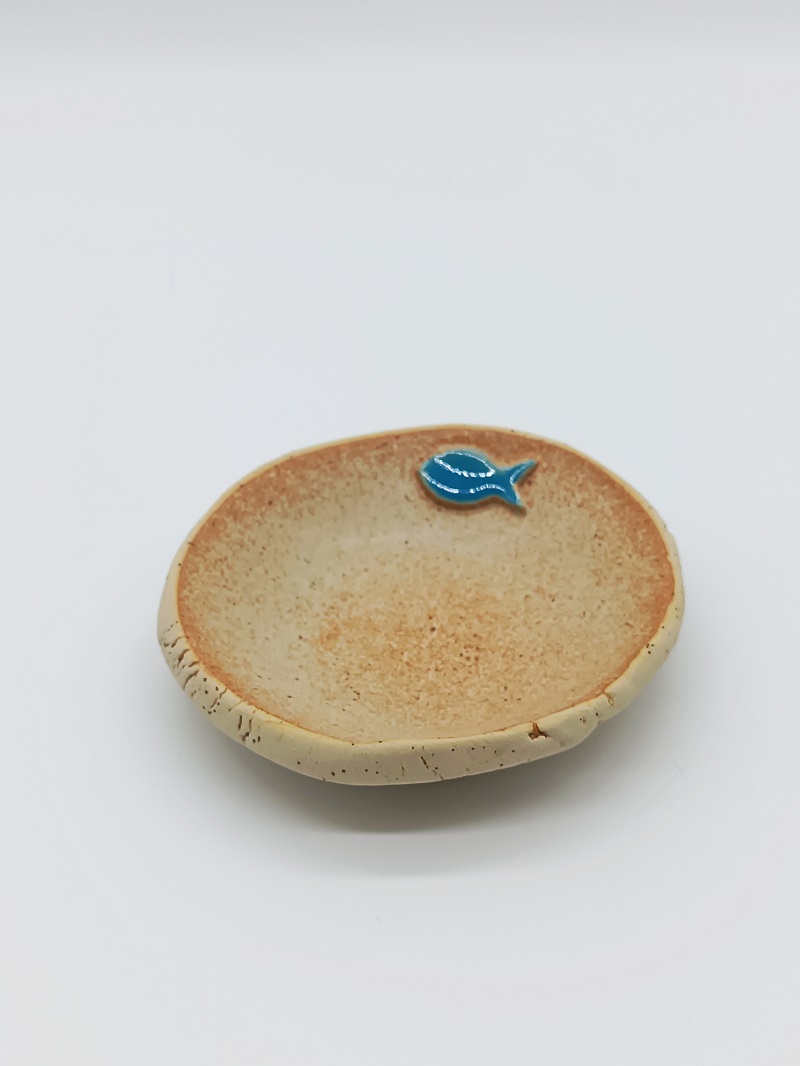Πιατάκι με ένθετο με σκασμένο πηλό στο τελείωμα 13εκ και ύψος 2,5εκ