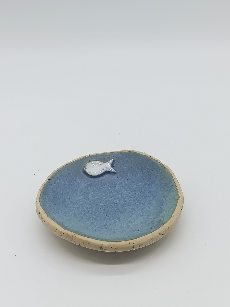 Πιατάκι με ένθετο με σκασμένο πηλό στο τελείωμα 13εκ και ύψος 2,5εκ