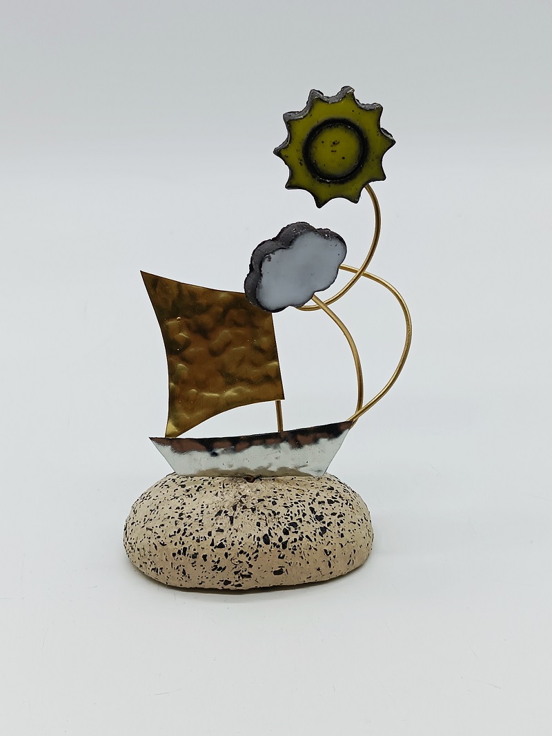 Μεταλλικά διακοσμητικά - αναμνηστικά σε βάση με κεραμικά στοιχεία