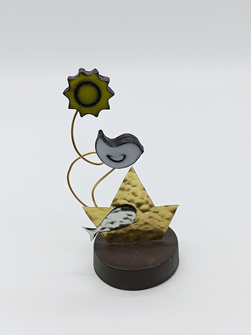 Μεταλλικά διακοσμητικά - αναμνηστικά σε βάση με κεραμικά στοιχεία